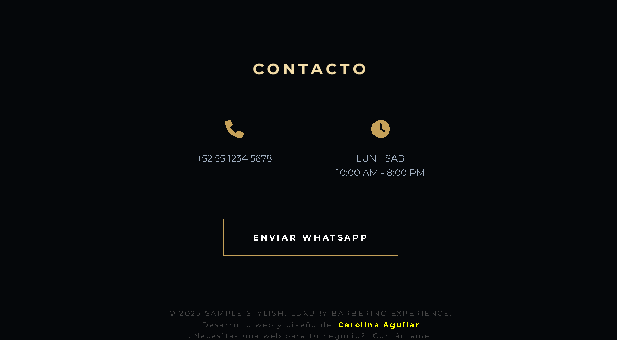 Desarrollo orientado a la estética Premium. Utilicé filtros dinámicos (grayscale) y efectos de fondo fijo (Parallax) para dar profundidad. La interfaz Dark Mode con acentos dorados está diseñada para elevar la identidad visual de la marca.